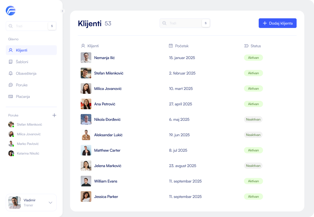 Aplikacija koja ti pomaže da brzo i lako praviš programe treninga i ishrane svojim klijentima